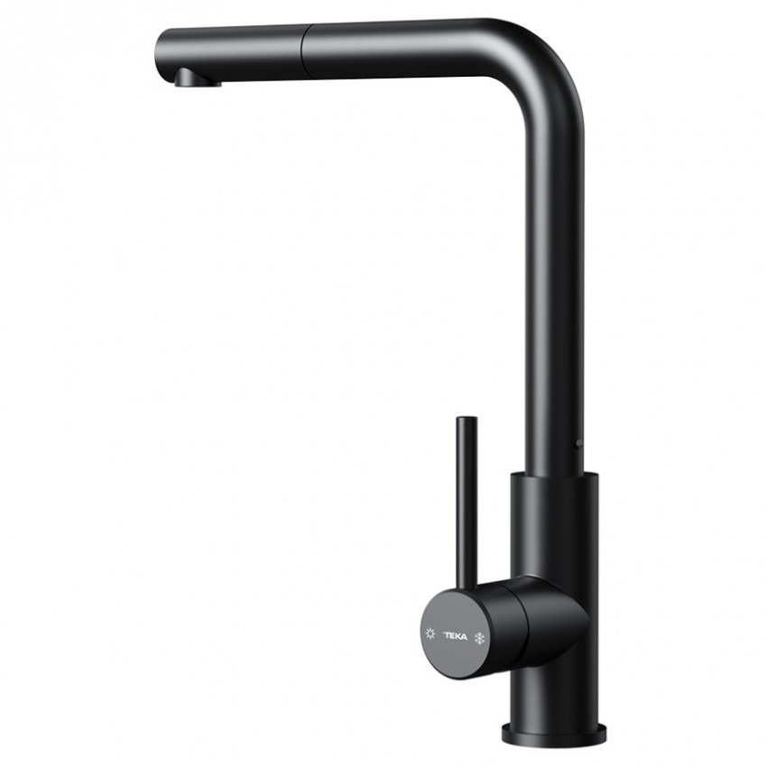 Однорычажный смеситель для кухни Teka UNI 9331 (116020023) черный с выдвижным шлангом и рычагом управления сбоку.