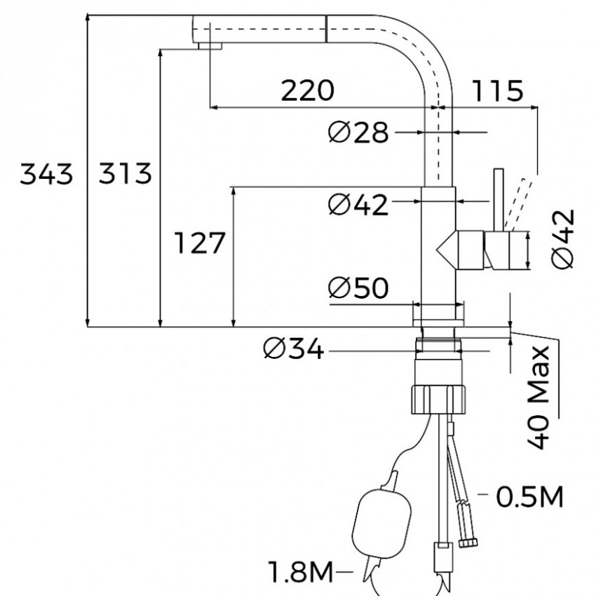 - Поворотный излив с выдвижным шлангом (1 функция: обычная струя воды)