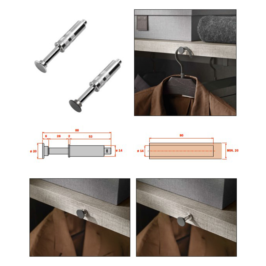 Ø 14мм, глибина врізання 80мм. Колір капелюшка – темний (титан), колір корпусу – нікель. Мінімальна товщина корпусу для монтажу – 20мм