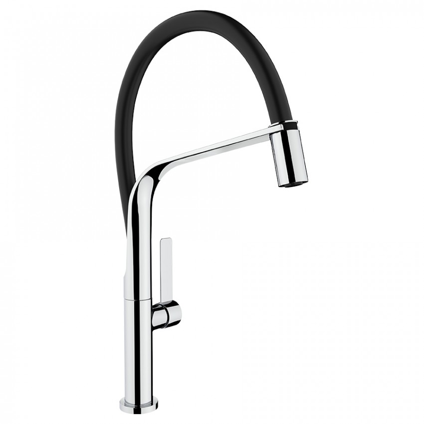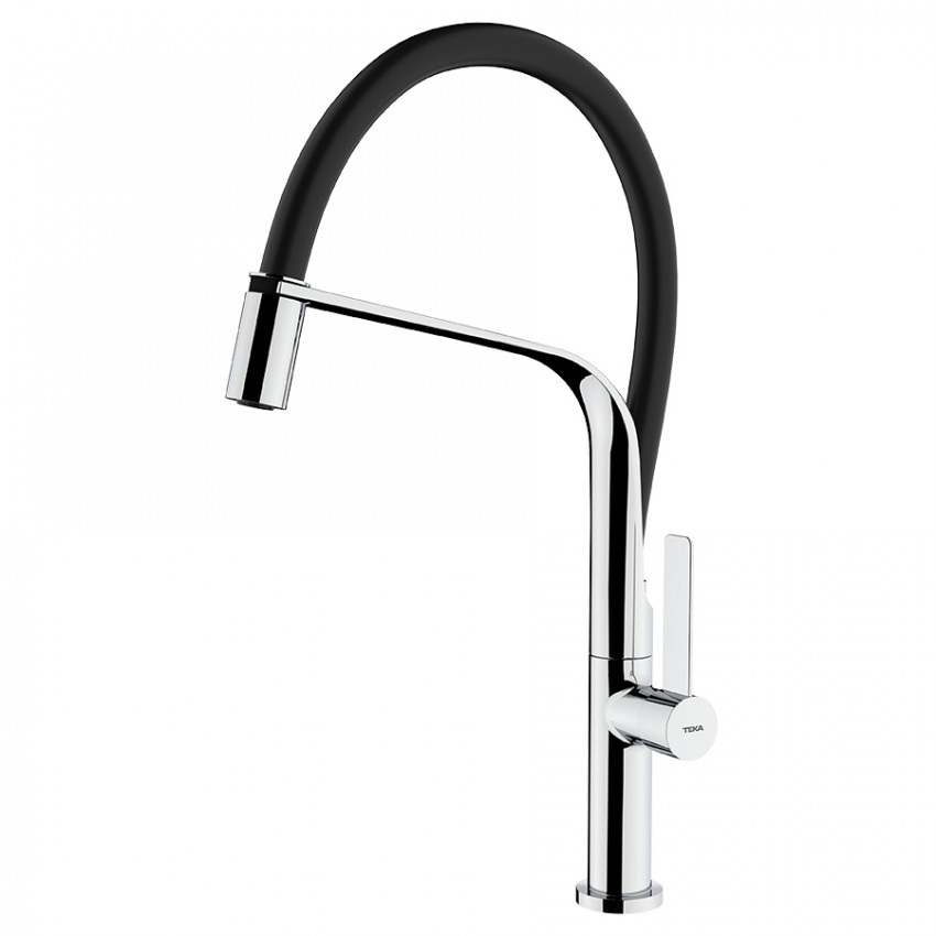 Одноважільний змішувач для кухні Teka FO 99 (62997020FN) хром чорний з поворотним виливом та важелем управління збоку.