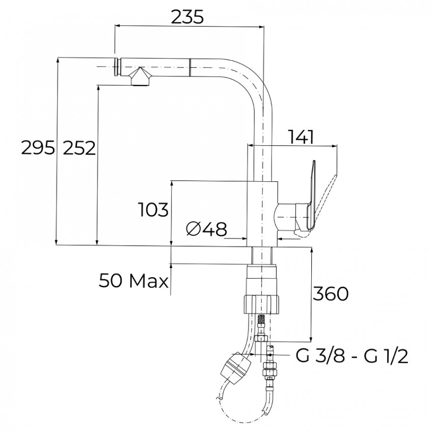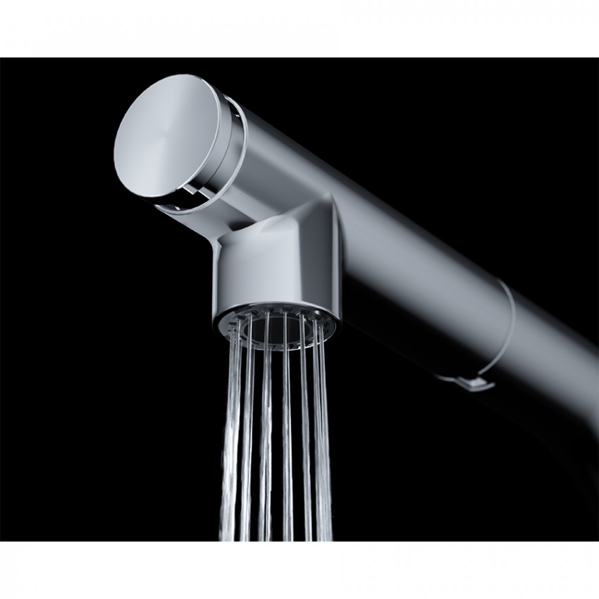 - Поворотний вилив з 2 режимним висувним шлангом (звичайний + душ)